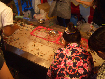 縁日ではかかせない金魚すくい。