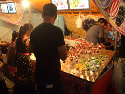 これも縁日にはかかせないリンゴあめ。実は食べたことないんやけど。