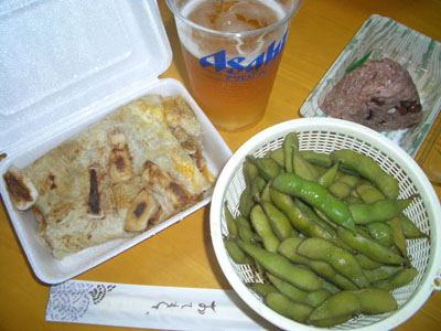 買ってきたイカ。生ビールも買って帰りました。あと自宅にあった枝豆と市販の赤飯のおにぎりで・・・いただきまぁ~すっっ。ビールもよく冷えてて、イカ焼きも もっちり食感で薄っすらソース味がしてウマい 😀