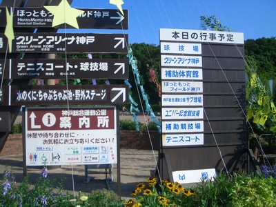 これがそのほっともっとフィールド神戸。南出口の出て右手にあります。逆光になったので、影になってます。ちょうど実際のライブ時間開始前1時間前(16時30分頃)に合わせて行ったので、こんな感じではないかと。日差しもかなりキツイですよ~!